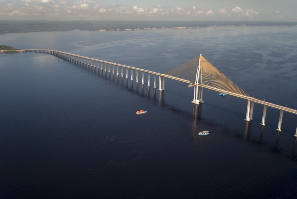 The enormous amount of rain that falls over the Amazon basin feeds gargantuan rivers that feed into the largest river of them all, the Amazon River. The discharge, or the amount of water that flows into the ocean, from the Amazon is greater than the next 7 largest rivers combined. The largest city in the Amazon rainforest is Manaus in central Brazil, located at the confluence of the River Amazon and Rio Negro.