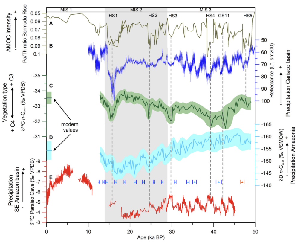Akabane, T. K., Chiessi, C. M., Hirota, M., I. Bouimetarhan, Prange, M., S. Mulitza, Jr, B., C. Häggi, Staal, A., Lohmann, G., Boers, N., Daniau, A. L., Oliveira, R. S., Campos, M. C., Shi, X., & De, E. (2024). Weaker Atlantic overturning circulation increases the vulnerability of northern Amazon forests. Nature Geoscience. https://doi.org/10.1038/s41561-024-01578-z